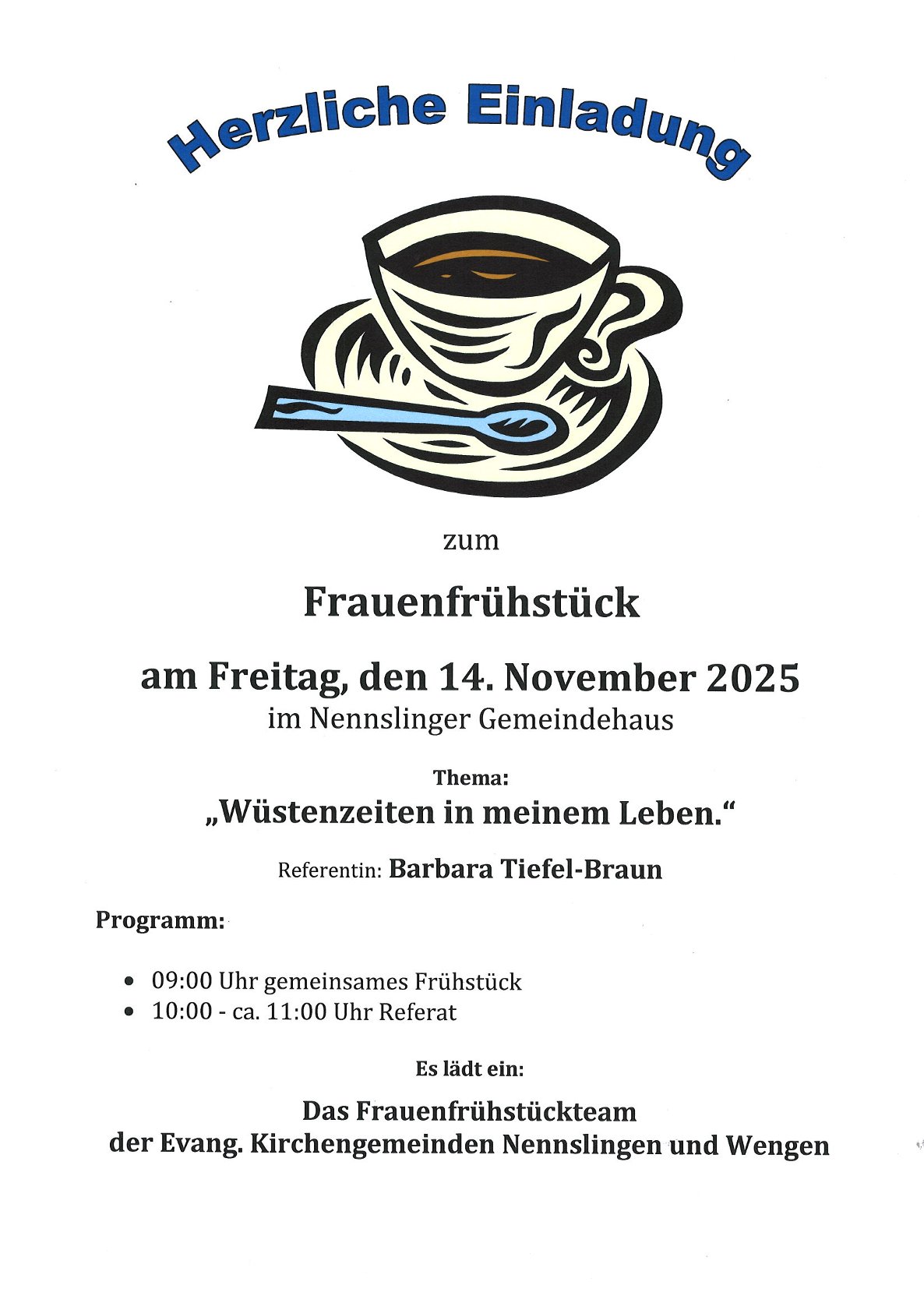 Wenn alles anders kommt – Krisen bewältigen Um Krisen ging es beim Frauenfrühstück im Herbst in Nennslingen, um die Frage, wie wir mit Krisen umgehen und wie wir sie bewältigen können. Dafür war Referent Josef Epp bereits zum zweiten Mal bei uns zu Gast und wurde erwartet von einem vollbesetzten Gemeindesaal. Dem Referenten ging es darum, ein „Weggepäck“ zu schnüren, Impulse zu geben, was uns auf Durststrecken des Lebens hilfreich sein kann. Rezepte für den Einzelfall gibt es nicht. Gerade in kritischen Erfahrungen ist es bedeutsam, aus der großen Erregung zur Ruhe zu kommen, genau wahrzunehmen, was geschieht, hinzuhören, was nun vielleicht von uns gefordert ist. Solche Zeiten der Ruhe, des Atemholens im buchstäblichen Sinn könnten eine hilfreiche Übung im Alltag sein. Ebenso wichtig ist es, sich selbst immer wieder zu stärken, auch wenn wir in Krisen manchmal voller Aktivität sind. Stille in der Natur, eine gute Ernährung, Bewegung, eine wohltuende Sinnlichkeit und Zeiten für das, was uns gut tut, dürfen gerade dann nicht vernachlässigen, wenn viel Kraft von uns gefordert wird. Von entscheidender Bedeutung sind tragende und vertrauensvolle Beziehungen. Die liebevolle Berührung, das vertrauensvolle Gespräch, das gegenseitige Verständnis – all das sind Erfahrungen, deren heilsame und kräftigende Wirkung vielfach auch von der Wissenschaft aufgezeigt wird. Unsere Aufmerksamkeit für bewusste zwischenmenschliche Begegnungen sollte eine Alltagstugend sein. Schließlich betonte der Referent die Kraft einer sinnstiftenden Spiritualität. Glaube ist kein Konto, von dem man abbuchen kann, keine Konserve, aus der man sich nach Belieben bedient. Gefragt ist unsere Offenheit für Hoffnungszeichen, die sich immer wieder ereignen können. Tragend ist eine Vertrauenshaltung, die der Zuwendung Gottes zutraut, immer wieder Türen zu öffnen und uns aufzufangen. Nach diesem sehr gelungenen Frauenfrühstück freuen wir uns schon auf das nächste Mal!